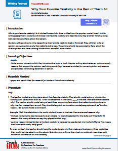 Who is your favorite celebrity? Is it Michael Jordan, JoJo Siwa, or Elsa from the popular movie Frozen? In this writing assignment, students will choose their favorite celebrity and describe why they are their favorite, using both opinions and facts about that person.